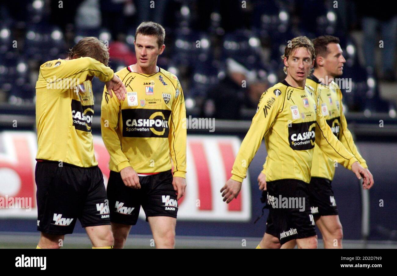 Spieler Von Cashpoint Scr Altach Reagieren Nach Dem Verlust Ihrer Osterreichischen Fussball Meisterschaftsspiel Gegen Fc Red Bull Salzburg In Salzburg 27 Februar 2008 Reuters Calle Toernstroem Osterreich Stockfotografie Alamy